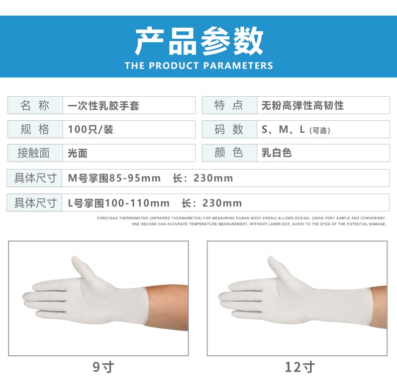 洁净室 12寸 白丁腈手套 (可灭菌)