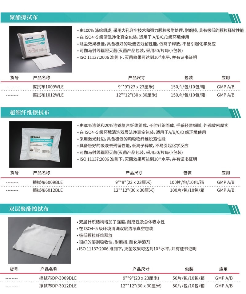 灭菌涤纶无尘布 1009W 是一款采用 100%涤纶材质,经过灭菌处理的高洁净度擦拭材料,具备网纹纹路、高吸水性、低颗粒释放等特性。